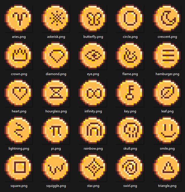 • Accessories, Expression, Coins, Artifacts: Various optional traits